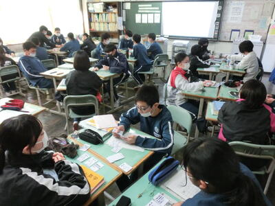 数学の様子です。三角形の合同条件についてゲーム形式で覚える活動です。