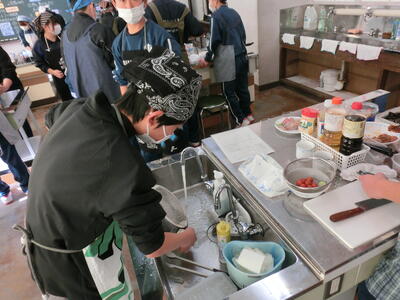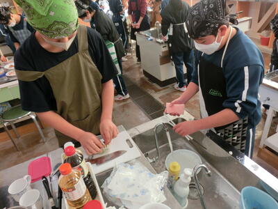 家庭の授業では、「生姜焼き」(肉料理)の実習をしました。