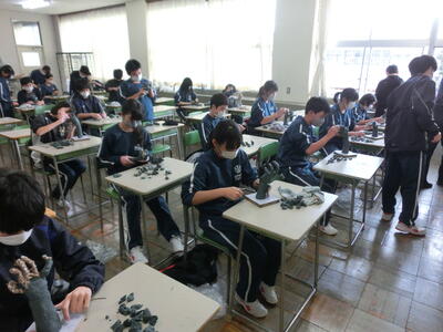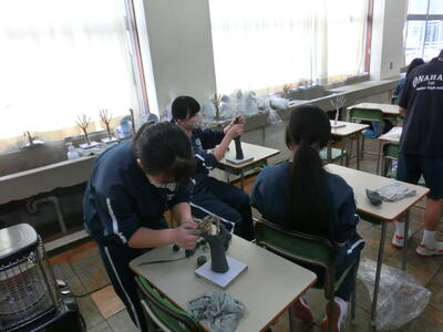 1年生美術の様子です。粘土を使って「自分の手」を作成しています。