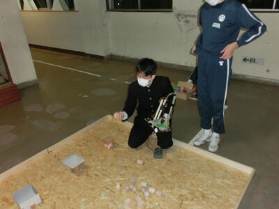 今週末の24日(土)に、福島高専を会場に福島県中学生ロボット競技会(ロボットコンテスト)が開催されます。本校からは、毎年、特設ロボコン部として夏から活動し、参加しています。今年も3年生の3名が競技会に向けて、放課後活動してきました。