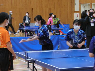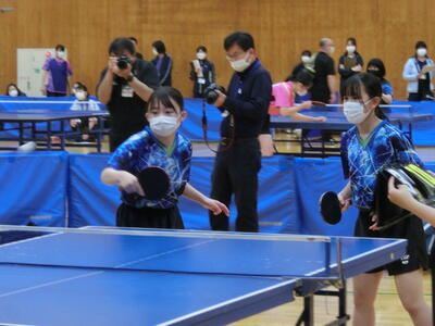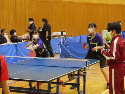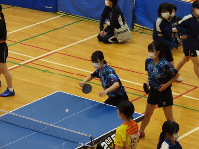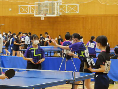 6月10日(金) 市中体連卓球大会女子個人 2・3年生は、ダブルスに出場。3ペアすべてがベスト16に勝ち上がり、県大会出場の切符をかけて午後の試合に臨みました。