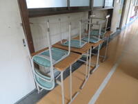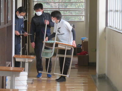まずは、生徒用の机、いすの移動です。新しい配当学級の人数にあわせて、机やいすを移動していきます。
