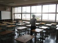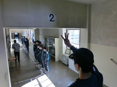 授業終了後には、今年度初の清掃。係の指示で、整列が完了。
