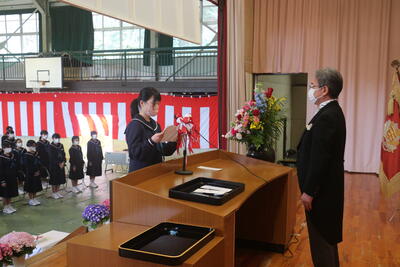 新入生代表誓いの言葉。「勉学に励み、部活動との両立を図りたい」と力強いことばが述べられました。