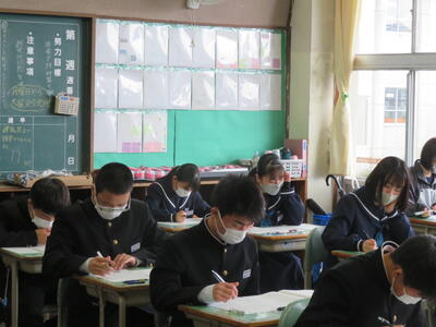 3年生の皆さんは、先週に修学旅行を終え、来週には合唱コンクールを控え練習に励むという慌ただしい日程の中でしたが、しっかり取り組んでいました。