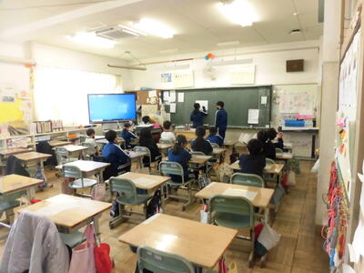 2/22(水)、縦割り班で1~5年生が集まり、6年生を送る会の話し合いを行いました。3/1に実施予定の6年生を送る会では、それぞれの縦割り班ごとに、5年生が中心となり、6年生への感謝を伝える活動を行います。