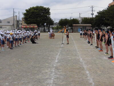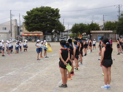 6/23(水),あたごフリータイムから5・6校時にかけて,6年生を励ます会と陸上競技記録会を行いました。6年生を励ます会では,選手の紹介や応援がありました。陸上競技記録会では,6年生一人ひとりが自分の種目に挑戦し,記録をとり,みんなに発表しました。6年生の頑張る姿や1~5年生の一生懸命に応援する姿をたくさん見ることができまいした。