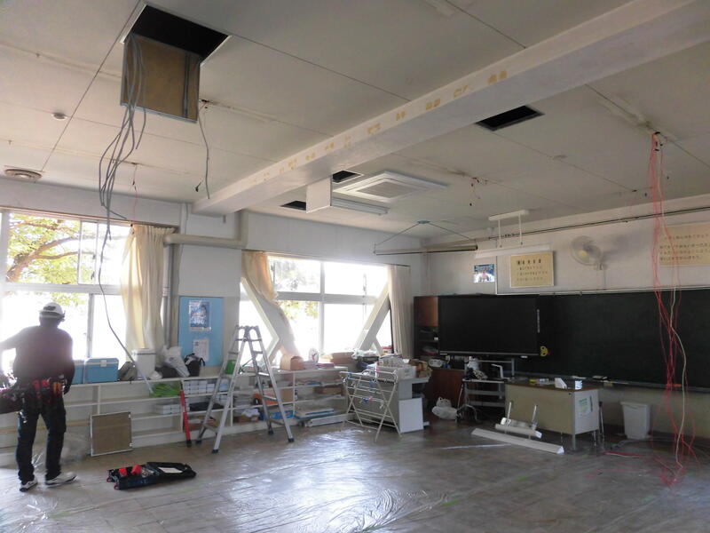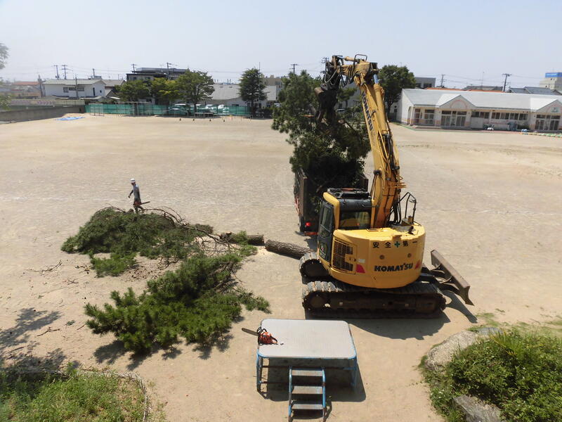 来年度からの学童増設に向けての工事や松の木(カラスの巣ができて困っています)の伐採等,2学期に向けてのリニューアルを行っています。