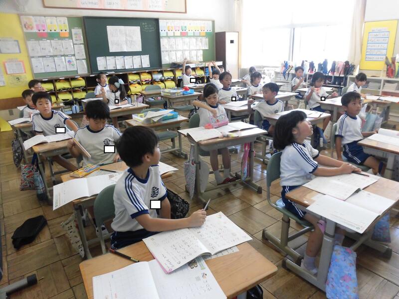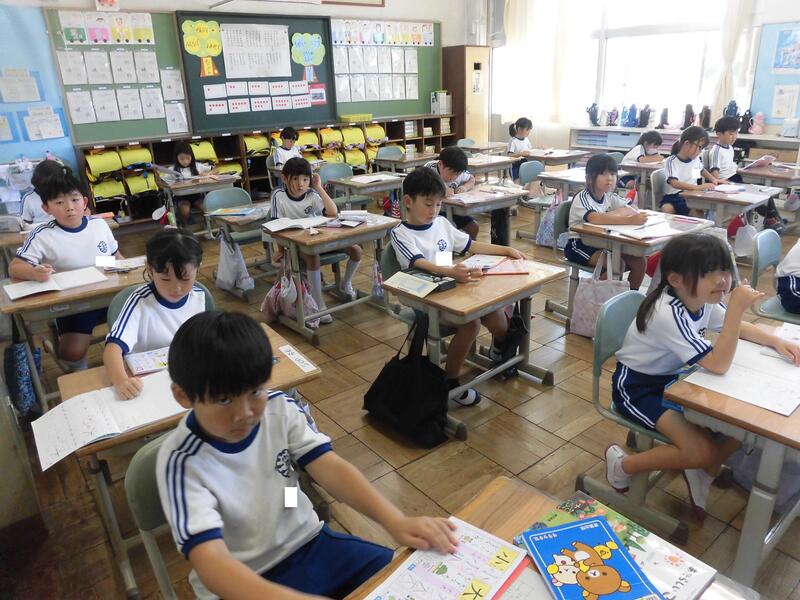大休憩、元気に外遊びをしてきた後の1年生です。