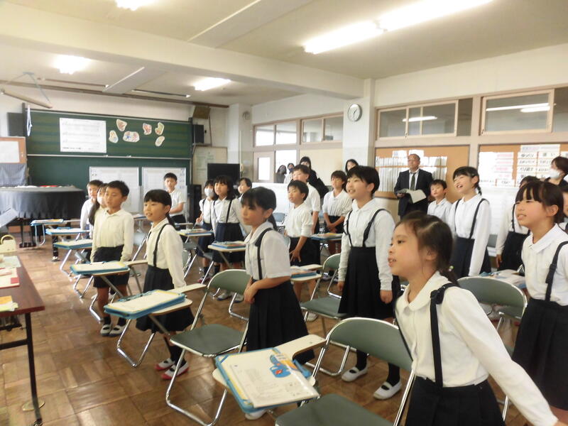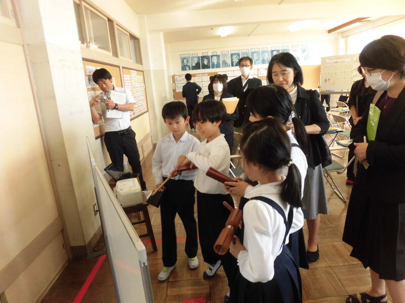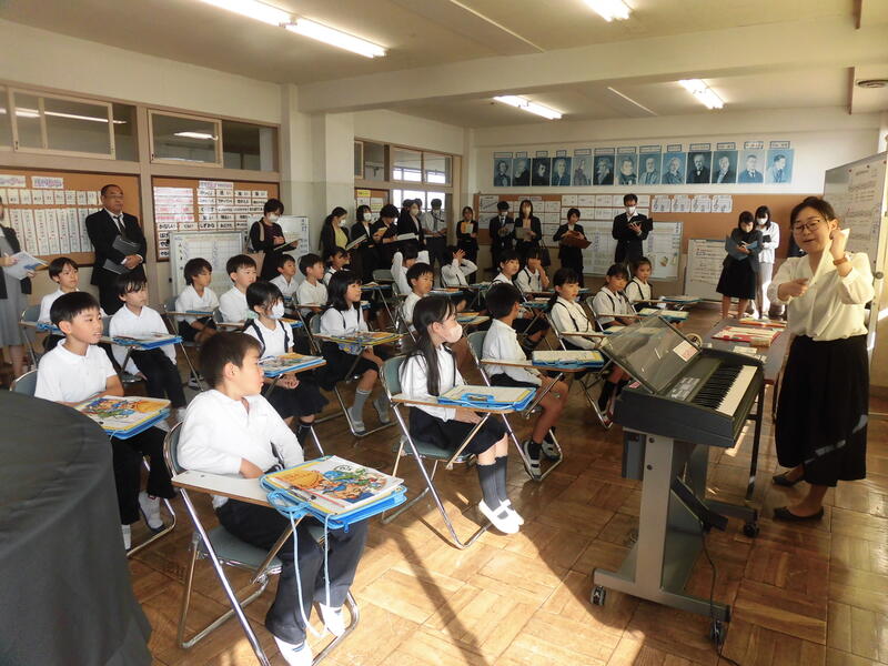 3年3組で音楽の研究授業がありました。音楽を専門とする多くの先生方に参観していただきました。
