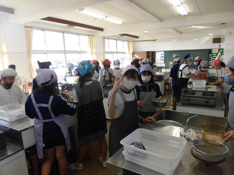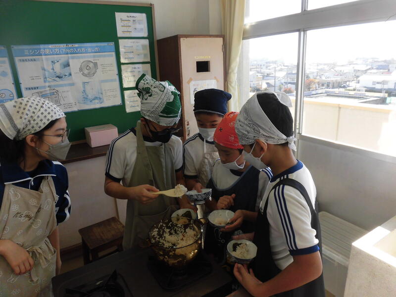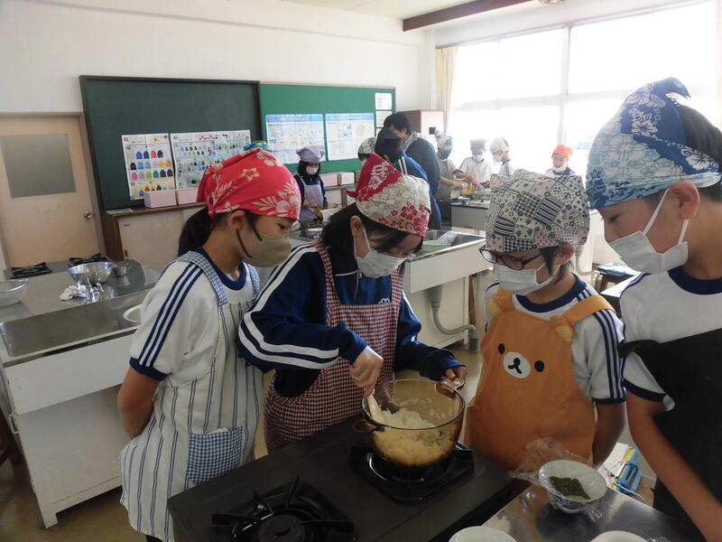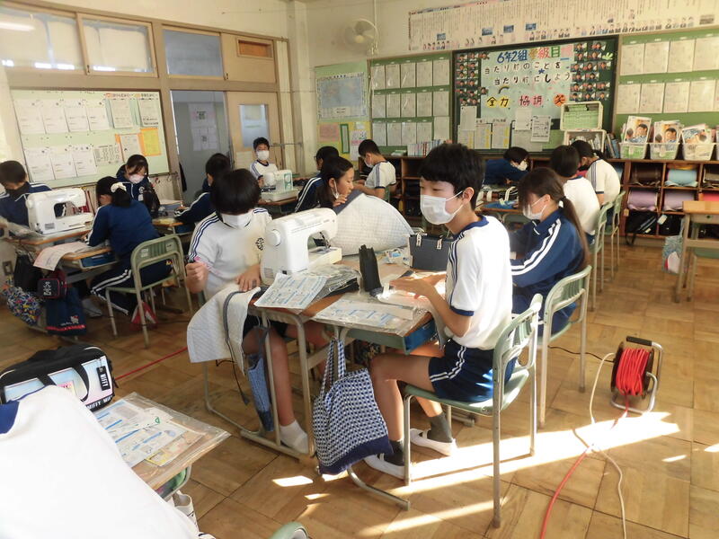 6年生は裁縫を,5年生は調理実習を行っていました。