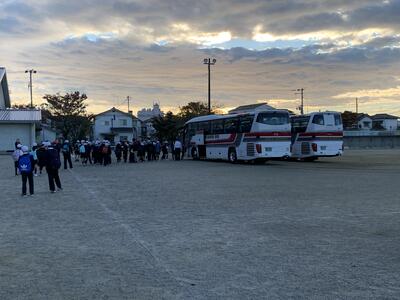 出発式をして、バスに乗りました。