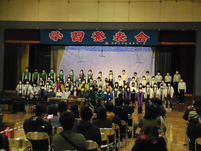 11/20(土),2年ぶりに学習発表会を開催しました。1年生は劇「ブレーメンの音楽隊」,2年生は表現「あたごたんけんたい」,3年生は音読劇「モチモチの木」,4年生は合唱・ダンス「Tomorrow & やってみよう!」,5年生は運動「レッツ トライ! リズムに乗って」,6年生は劇「鬼滅の刃」を発表しました。子どもたちの一生懸命な姿が印象的でした。