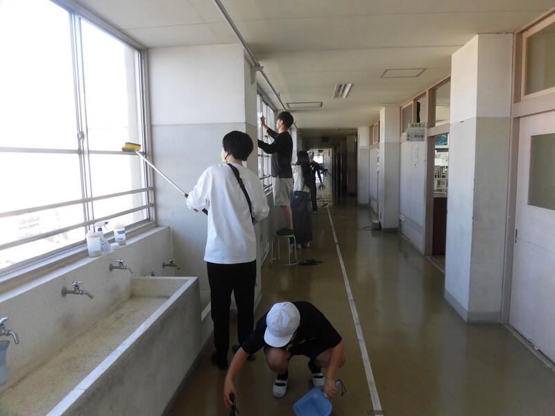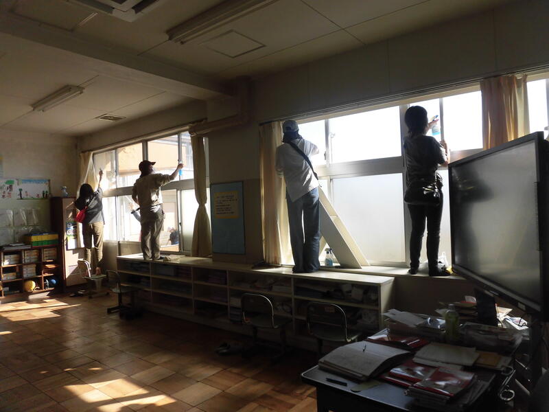 火曜日の研究公開に向けてPTA奉仕作業で窓拭きや水回りをきれいにしていただきました。