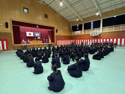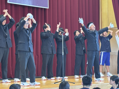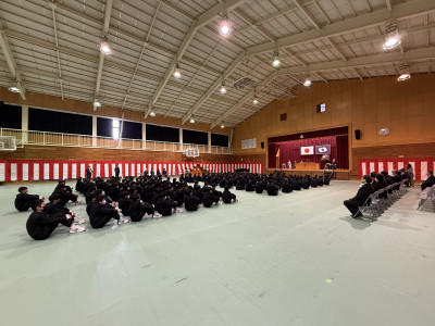 2025年11月12日 12時44分〇先週の金曜日の全校集会時に、校長先生から日本国憲法を紹介しながら、「なぜ勉強しなければならないのか」、「何を大切にして生きていかなければならいないのか」などについて、全校生徒を対象に講話がありました。中でも、『みんなが安心・安全に生活していくためには、自分の幸せだけではなく、みんなの幸せを求めて生活することが大切である』というメッセージを伝えていただきました。