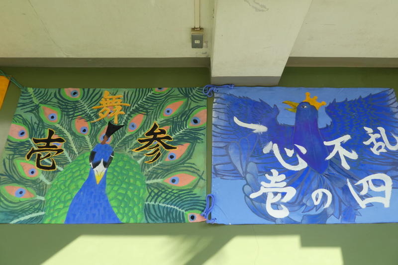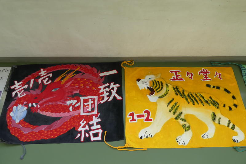 写真は学級の旗です。とても上手に描けています。どのクラスが最優秀賞を取るのか?