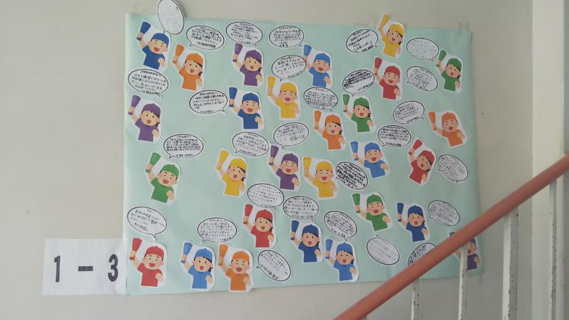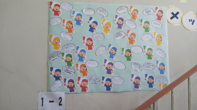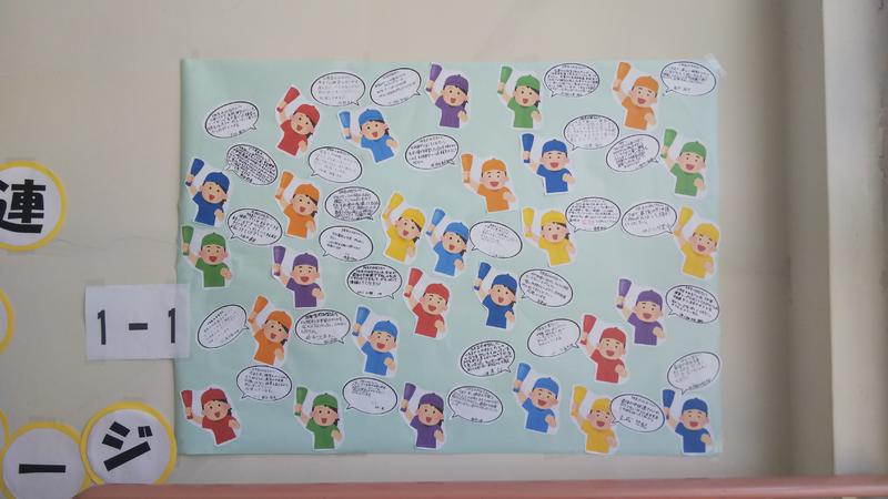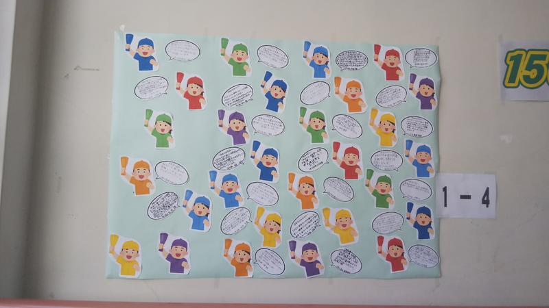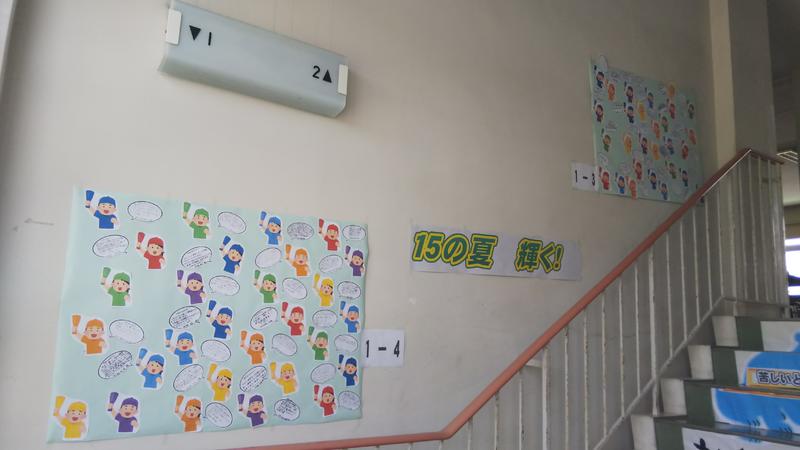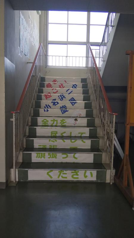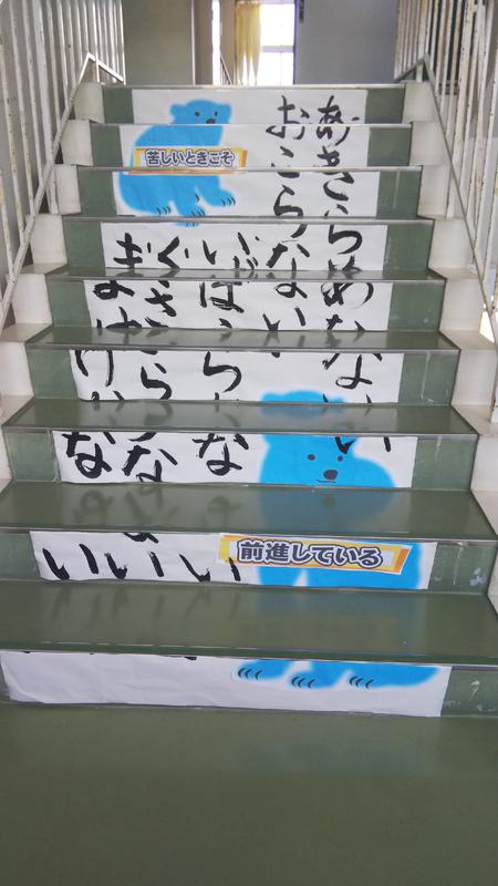 階段にもメッセージです。「あおいくま」は選手壮行会の際に、校長先生からのお話にありました。