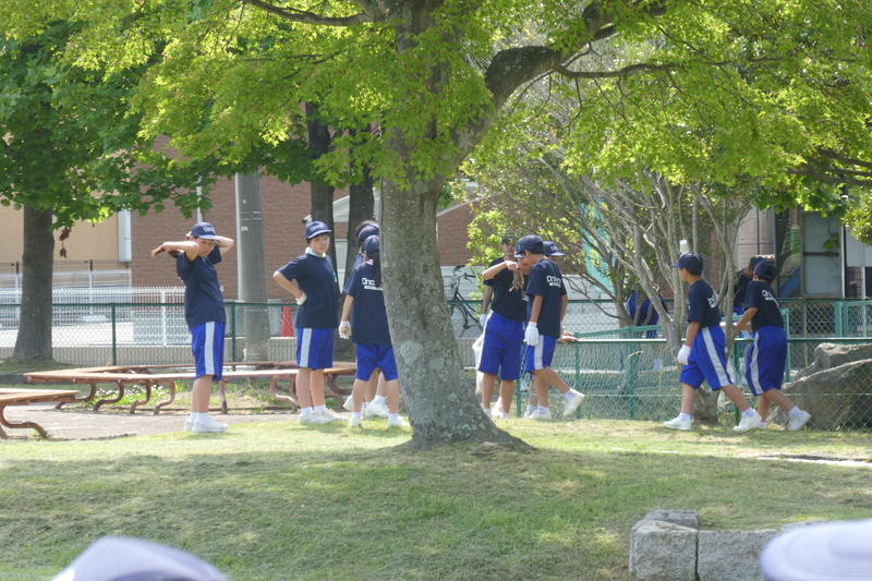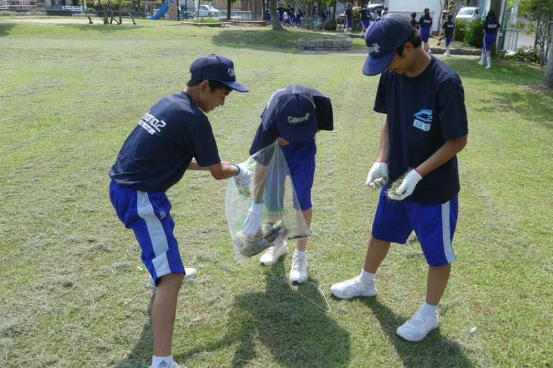 1年生は校外にでて学校周辺の公園でゴミ拾いを行いました。