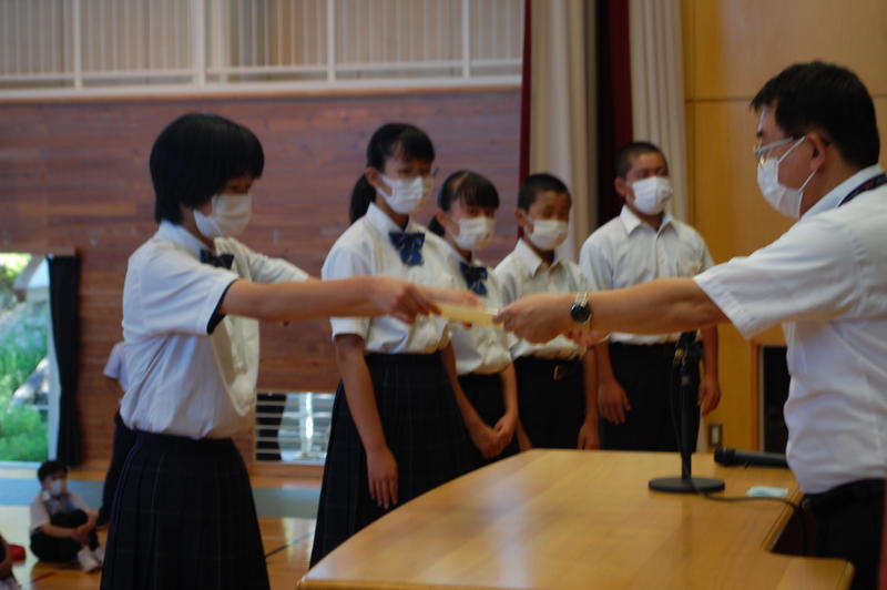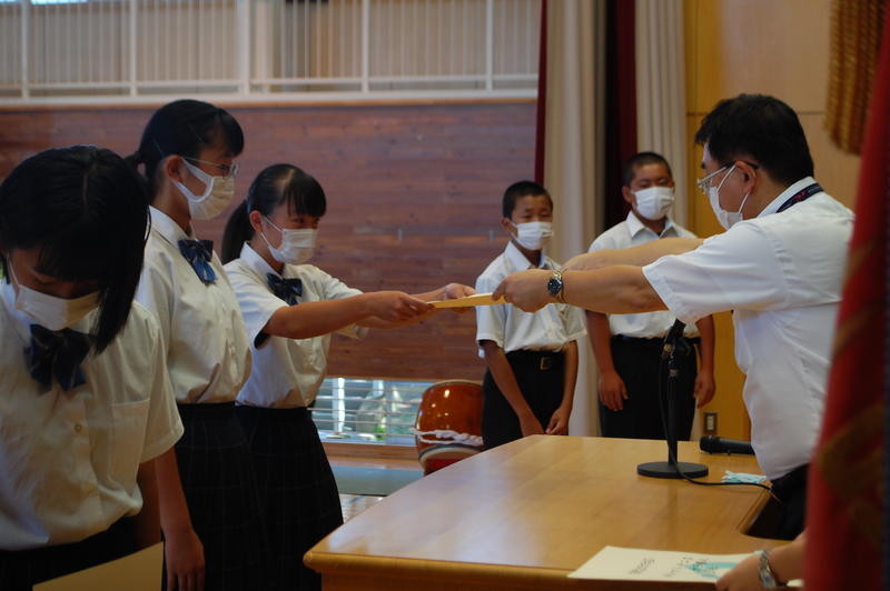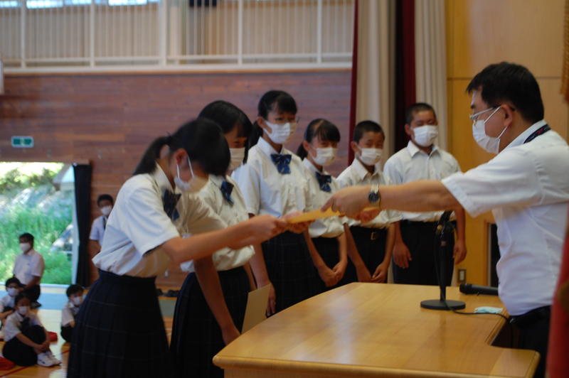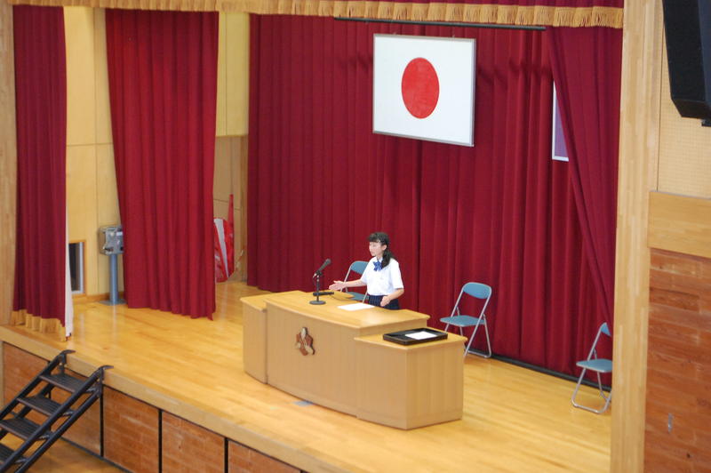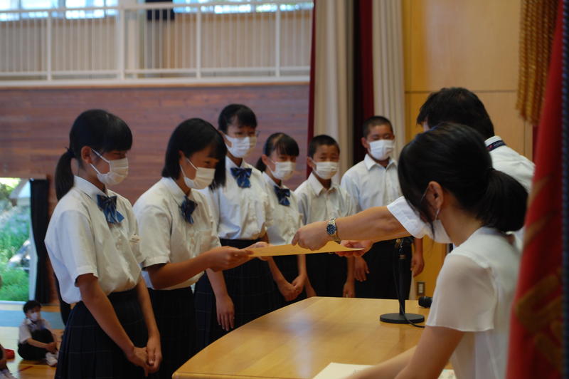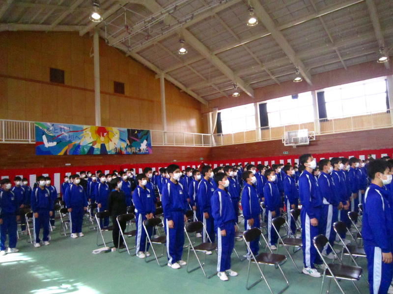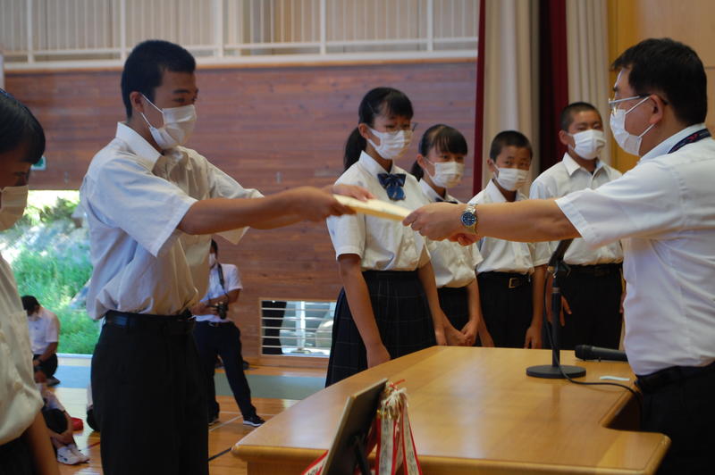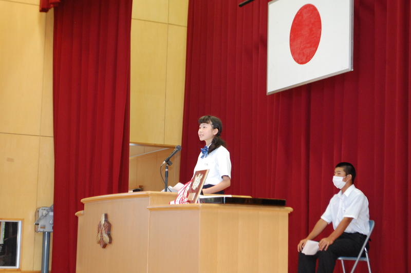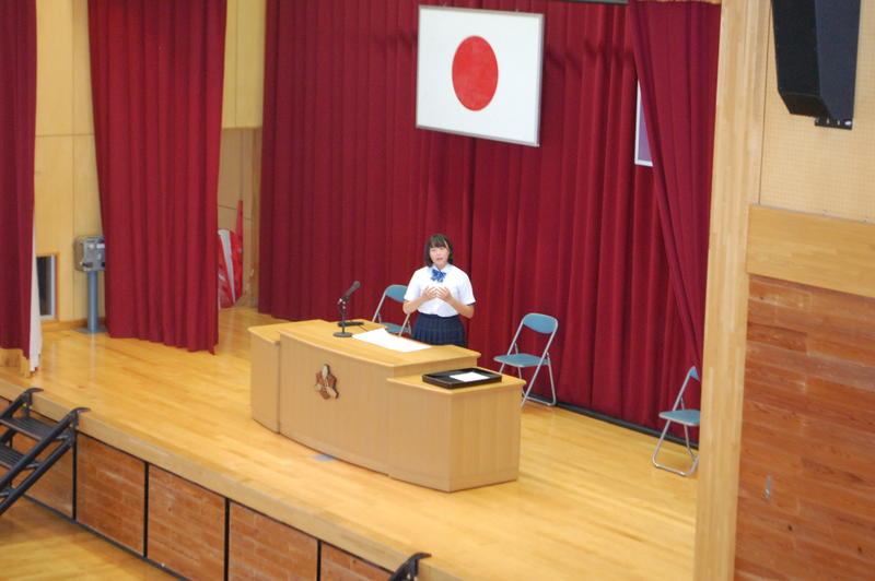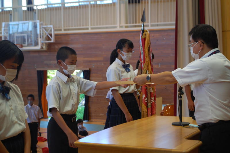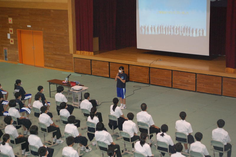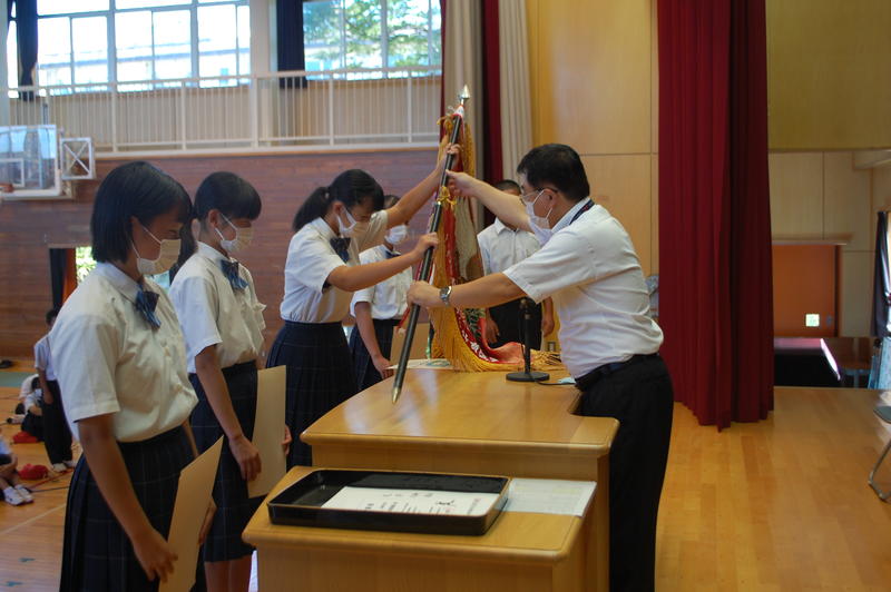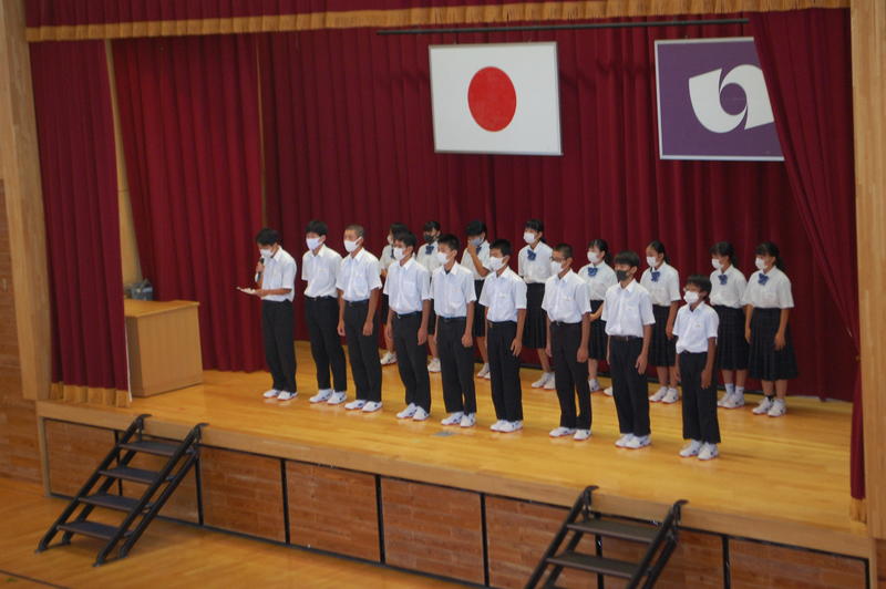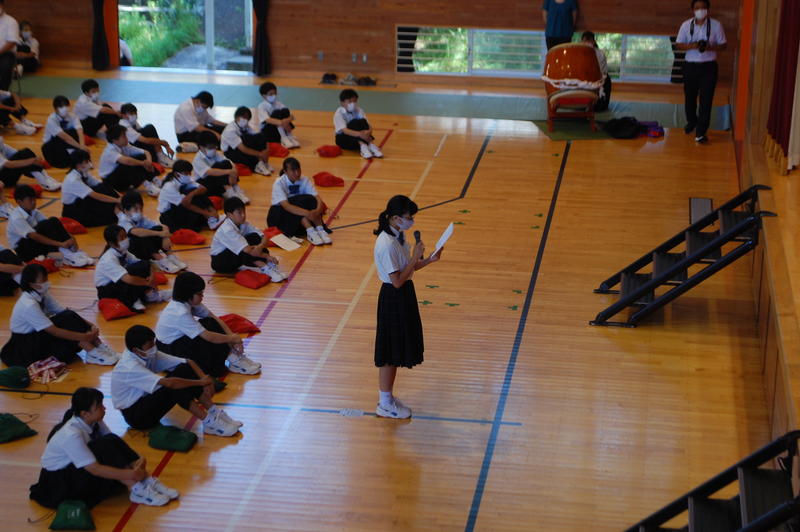 本日、8月25日(火)は2学期始業式でした。始業式の中で各学年の代表者よりスピーチがありました。3年代表者からは「前半は旗取り」、「後半は点取り」ということで、点数に結びつく努力をしていきたいという話がありました。中体連の各部の表彰および英語弁論大会に向けたプレ発表、市駅伝壮行会(応援団)などを実施しました。2学期は行事も盛り沢山あり、長丁場になりますが、精一杯取り組んで成功させましょう。以下は生徒達の活動の様子となります。