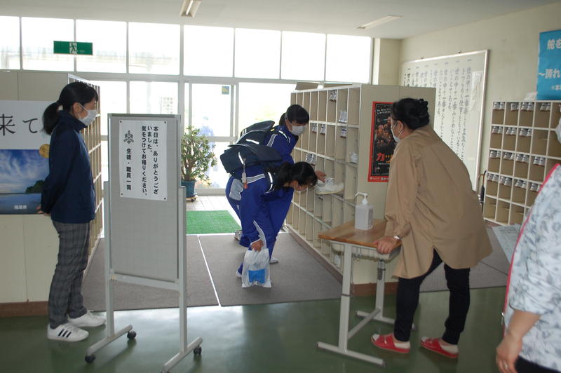 写真は本日の分散登校の様子です。