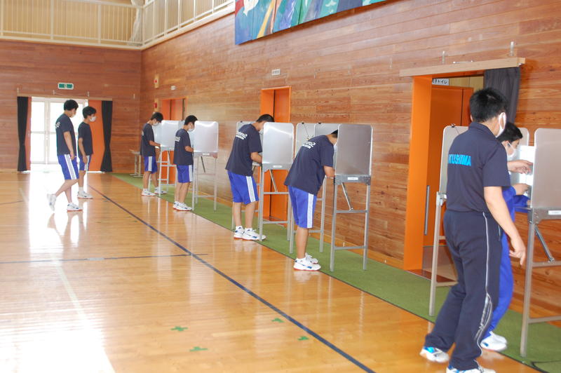 6月25日(木)の5・6校時に有権者教育を実施いたしました。平成28年以降、選挙権が18歳から持てるように変わり、選挙そして政治の意義について講師の方の話に耳を傾け、学ぶ姿がありました。後半は実際の投票の流れがわかるように模擬体験を行い、それぞれ役割を担いながら真剣に臨む姿がありました。講師の方から質問された事にもしっかり受け答えのできる3年生でした。以下の写真はその体験の様子となります。