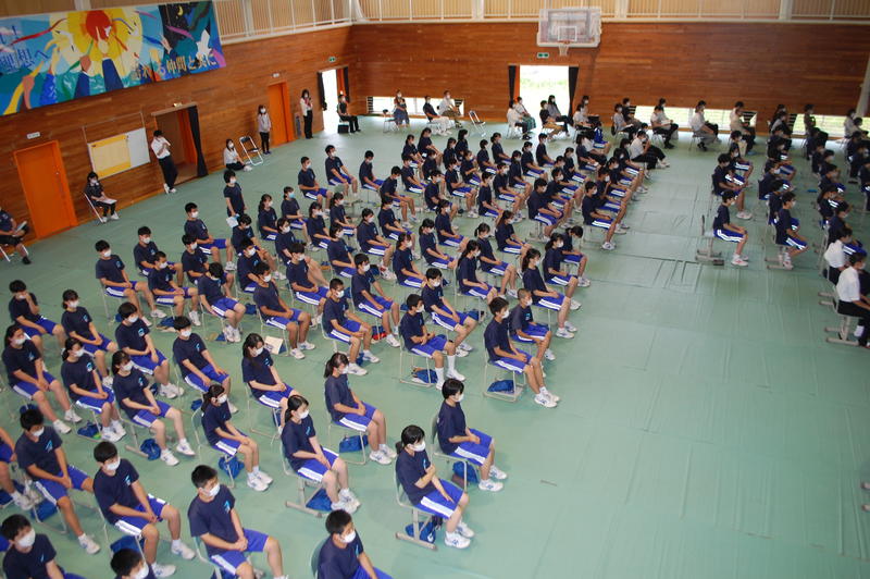 3蜜を避けるために2教室と体育館にわかれて、学習面、生活面、健康面のそれぞれで授業を行いました。