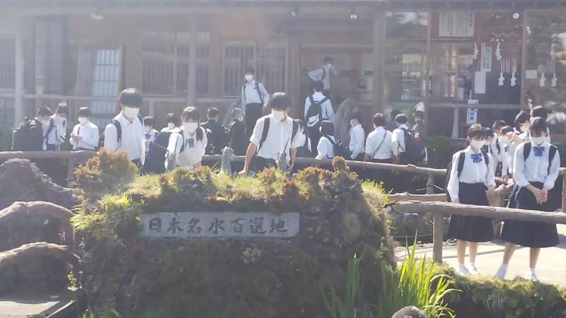 なんともきれいな湧水群です。水の中に吸い込まれそうなほど透明で、青く輝いています。