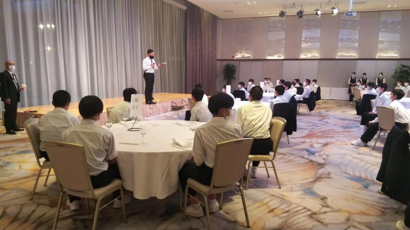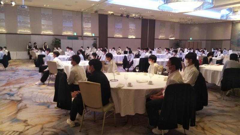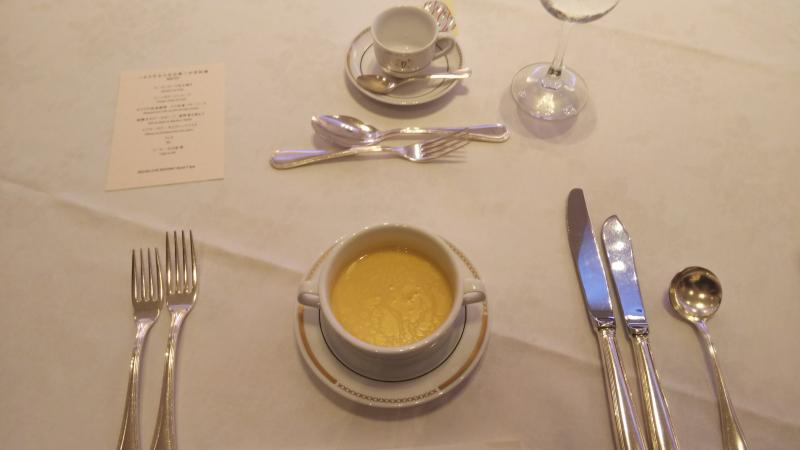 ホテルの方のテーブルマナーやナイフ・フォークの使い方等の説明を聞きながら、美味しく頂きました。