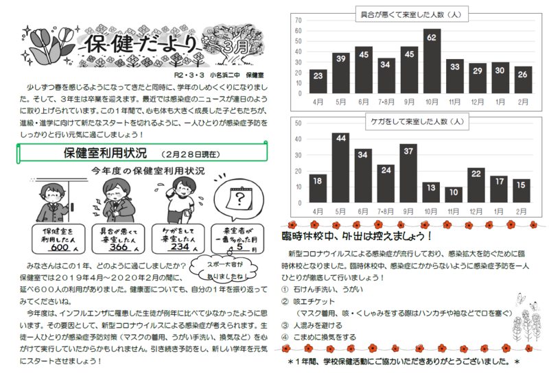 感染症にかからないように予防をし、残りの学校生活も元気に過ごしましょう
