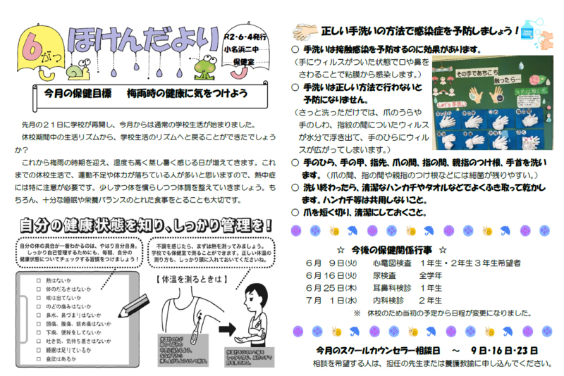 休校期間中、健康に気をつけて過ごすことができたでしょうか?