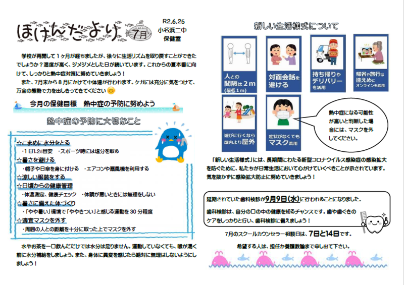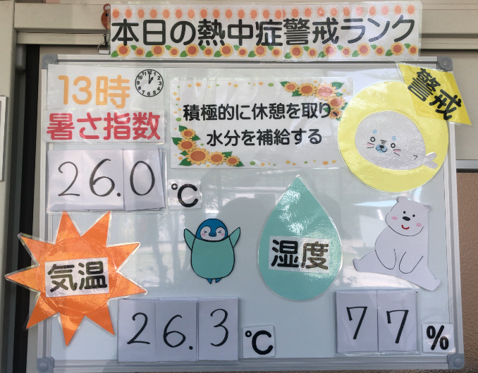 こまめな水分補給など、一人一人が熱中症の予防に努め、夏を元気に過ごしていきましょう!