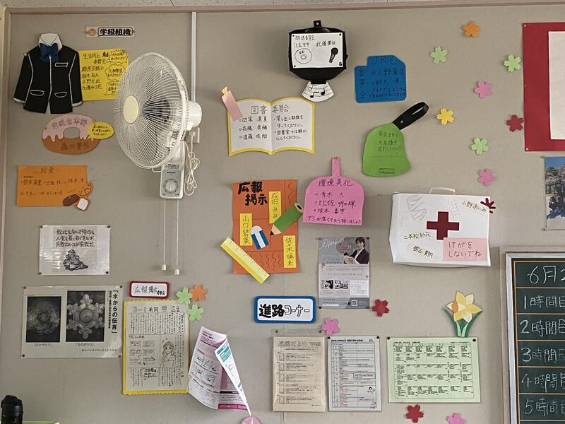 2024年7月4日 10時30分今年度から広報・掲示委員会では、学級の環境美化を目的に教室や廊下の掲示を委員が中心となり工夫しコンクールを実施しました。創意・工夫、季節感、全体のバランスなど3項目で委員、教職員の審査、投票の結果、1位3年1組、2位2年2組、3位2年1組が入賞しました。順位はつきましたが、入賞に至らなかったクラスも個性あふれる掲示を制作していました。今後も居心地の良い環境作りをしていってほしいです。