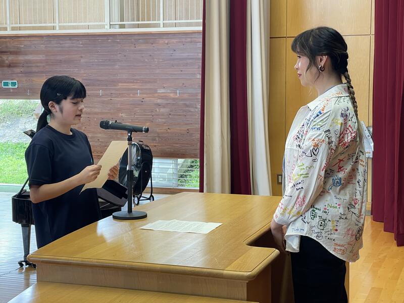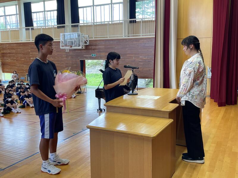 生徒会よりお礼の言葉は英語で伝えました。
