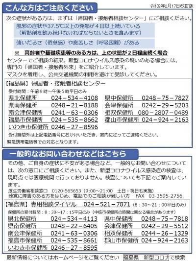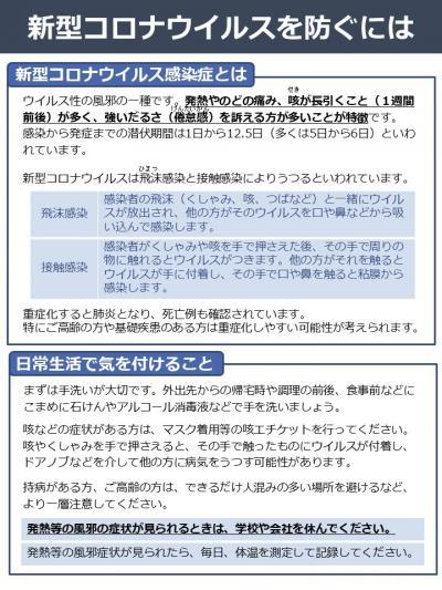2020年2月28日 08時51分いわき市教育委員会より、新型コロナウイルス感染症に係るリーフレットによる資料提供がありました。
