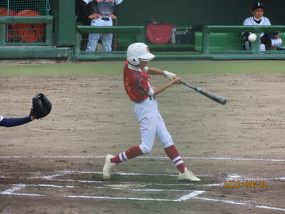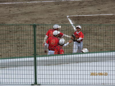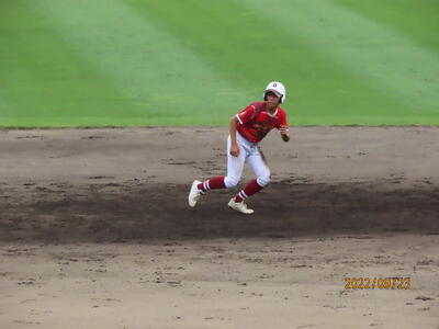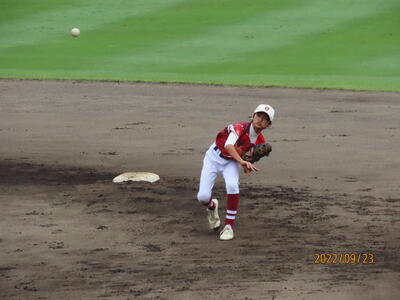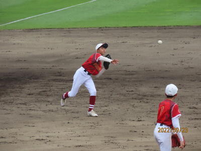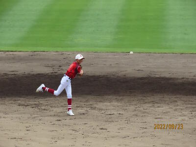 2022年9月26日 10時20分赤い、燃えるユニフォームの二中野球部。大きな声で、はつらつとした動きで、とても気持ちの良いチームです。一回戦は6-0で勝利、二回戦は3-6で惜敗でした。保護者の方々の応援ありがとうございます。