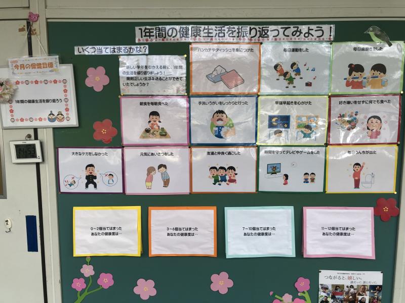 保健室前掲示 ~1年間の健康生活の振り返り~