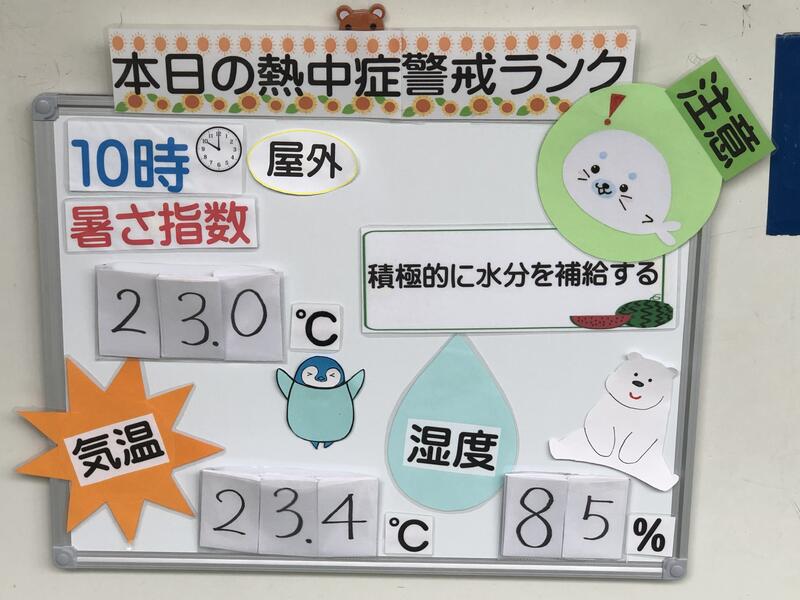 今年度も保健室の前に熱中症警戒ランクを掲示しています。