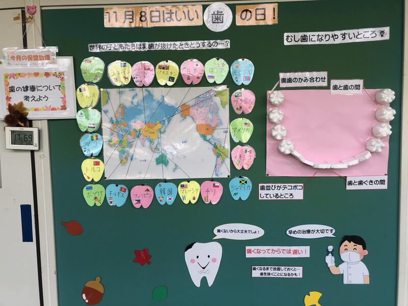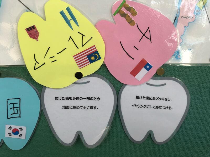 今月の掲示では、世界各国の抜けた乳歯の扱い方について紹介しています。