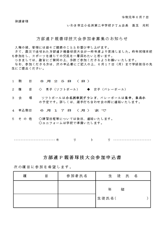 2019年6月10日 07時25分6月7日、次のような参加者募集の文書を配布しました。