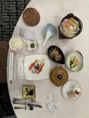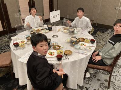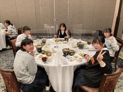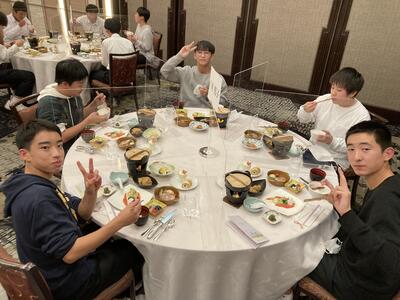 夕食 2022年10月31日 19時43分 17時10分頃にホテルに着きました。夕食の18時30分まで部屋でのんびり過ごしました。昼食もしっかり食べたにもかかわらず、男子は夕食にご飯、味噌汁のおかわりを何回していました。元気でなりよりです。