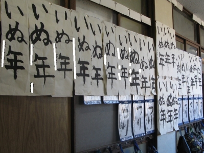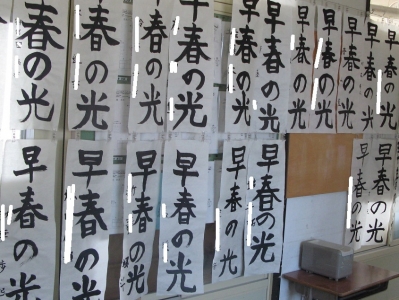 先週書いた「書き初め」の作品が各教室前に掲示されています。