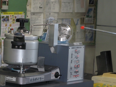 実際に発電のしくみがわかる実験装置も持ってきてくださいました。
