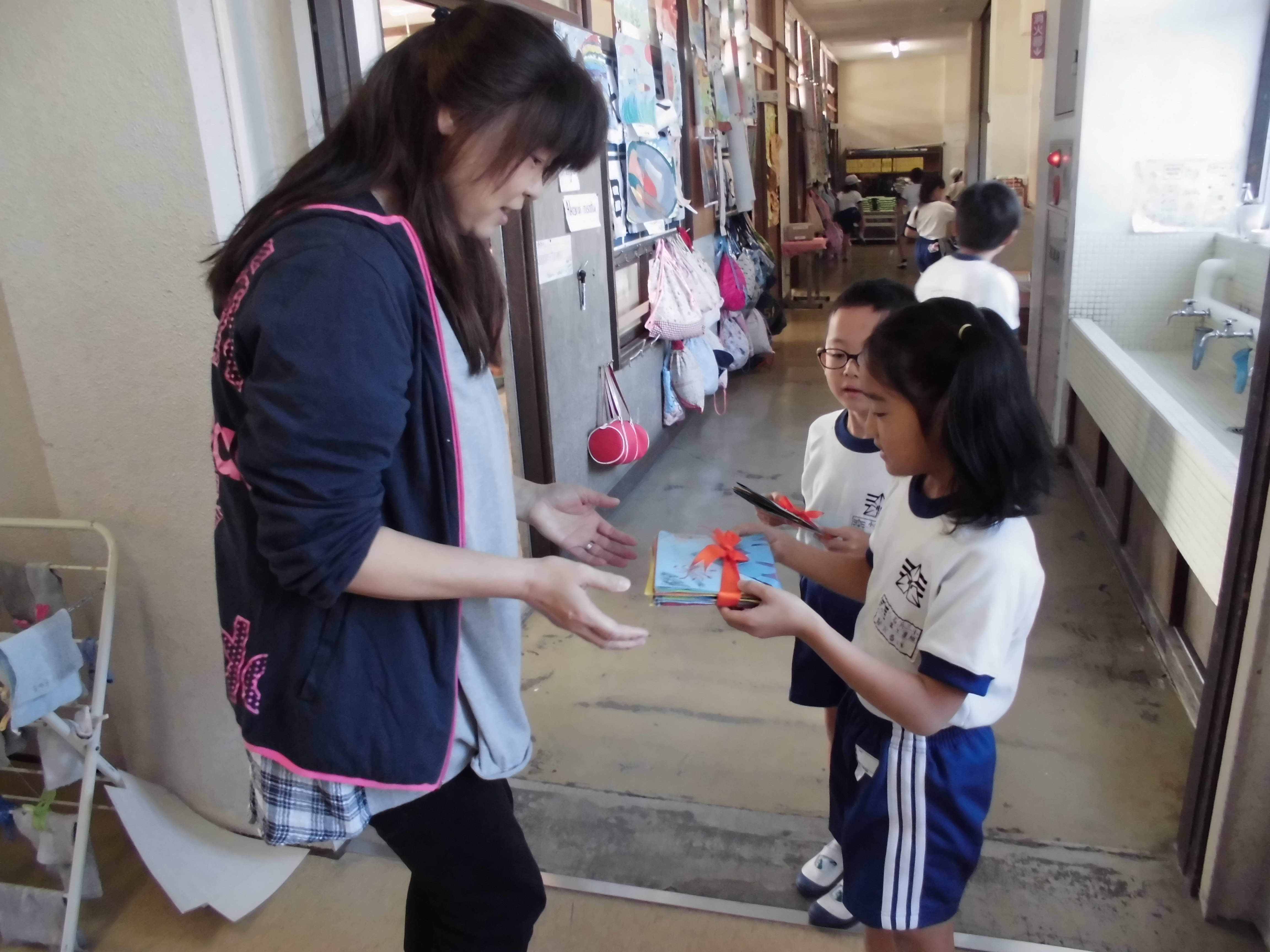 1年生のみなさんに招待状を作ったので、担任の先生に届けに行きました。