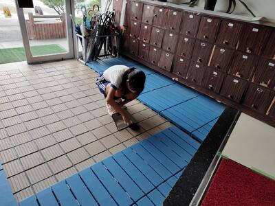 みんなの使う廊下を清掃中!