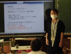 2022年10月19日 15時46分今日は、4年生の市民講座活用事業がありましたので紹介します。今日、お越しいただいたのは、市の市民生活課の講師の先生で「ユニバーサルデザイン」について説明していただきました。はじめに「ユニバーサルデザイン」の意味や認知度についてお話していただいたのち、具体的な取り組みについて説明していただきました。子どもたちは、聞いたことはあっても意味や具体的な取り組みについての知識はなく、興味をもって聞いていました。インクルーシブ教育(障がいのあるなしにかかわらず共に学ぶ仕組み)と併せて、しっかり理解してほしいと願っています。本日の「くすのきタイム」で6年生と1年生が一緒に楽しく過ごしていましたので、そちらの様子もご覧ください。