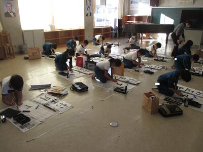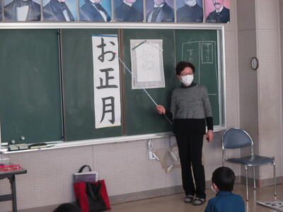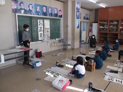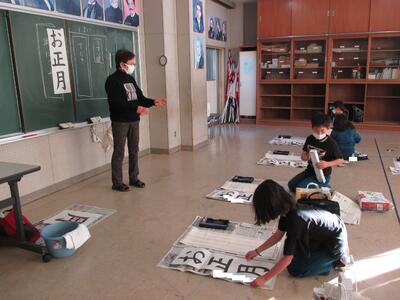 3年生は、丹先生に書き初めのご指導をいただきました。