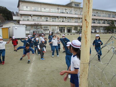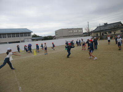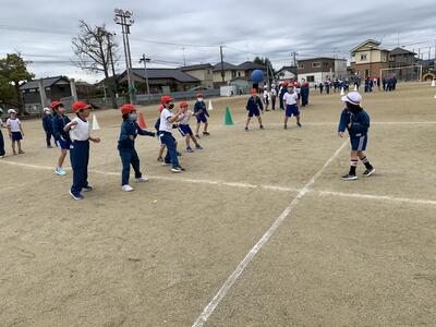 友達と声を掛け合って、元気いっぱい体を動かしていました。