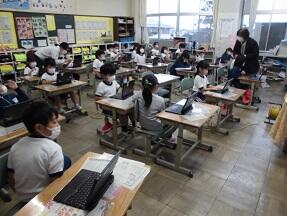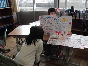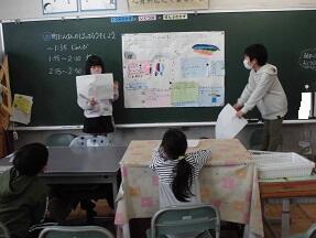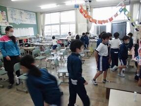 2022年12月22日 14時50分今日は昨日に引き続き、校庭でお楽しみ会を兼ねてスポーツフィステバルを計画していた学級が多かったのですが、あいにくの雨のため、室内でのお楽しみ会となったようです。各学級ともに学級会等で話合い、役割分担を決めて工夫して学級の絆を深めていました。子どもたちが計画し、子どもたちが準備して、学級全体のことを考え実施する企画がすばらしいです。その他、タブレットの使い方を学んだり、町探検のまとめをポスターセッションによって伝えたりしていましたので紹介します。
