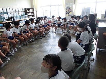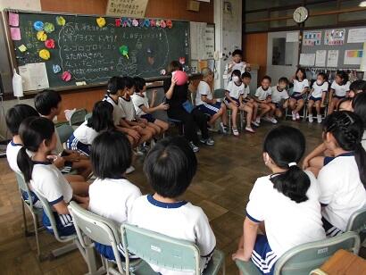 4年2組は、これから産休に入る担任の先生とのお別れ会を行っていました。クラスがゲームをとおして1つになって盛り上がりました。