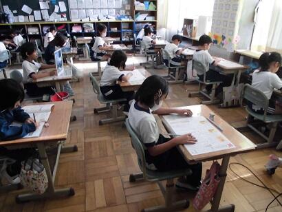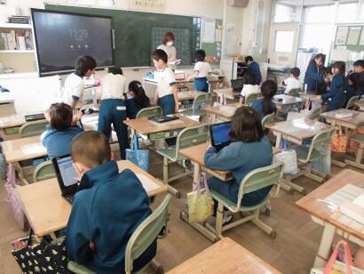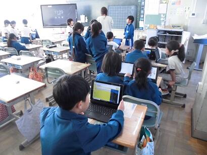2年1組は、タブレットを使いタイピングに取り組んでいました。